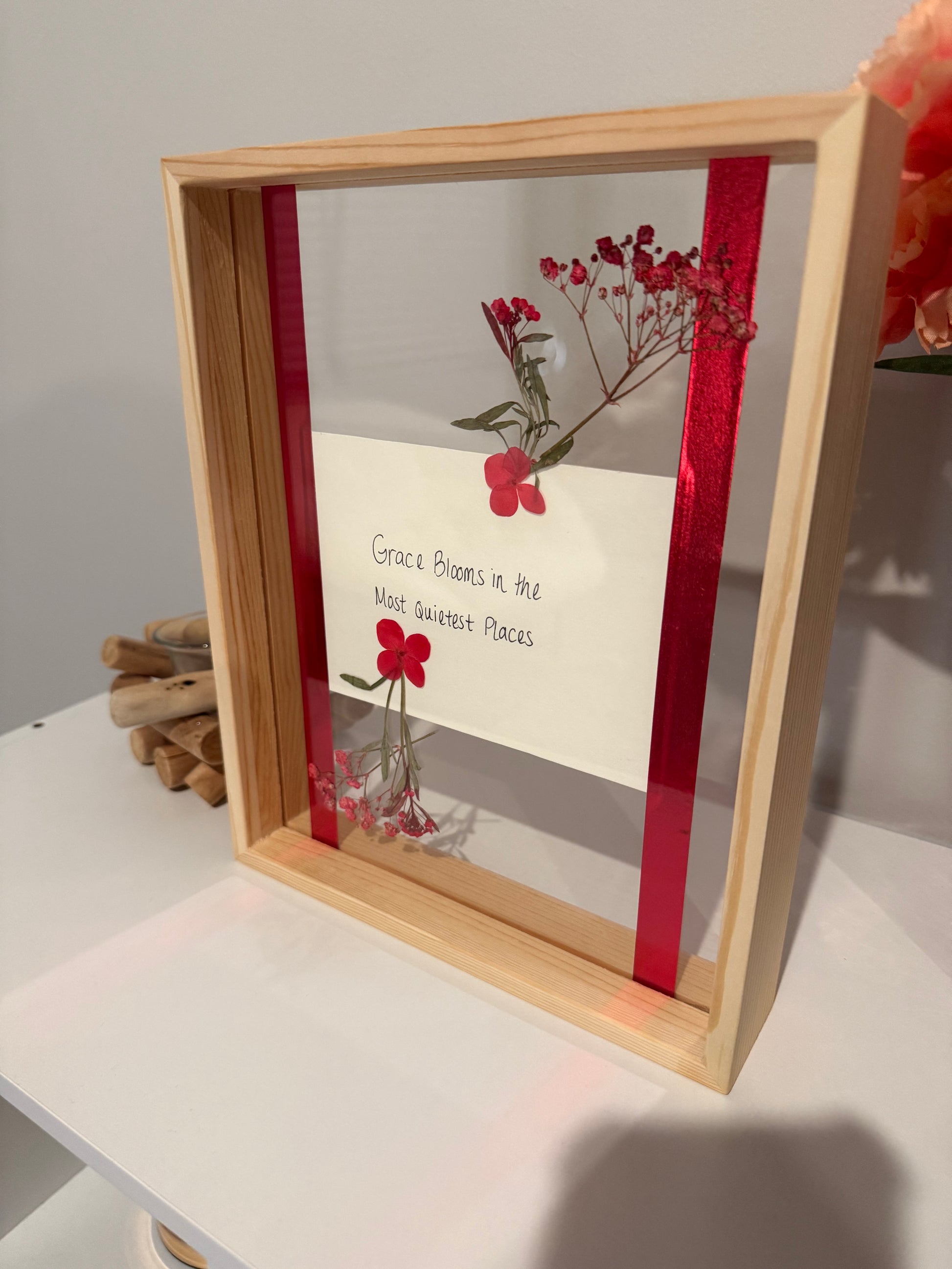 Experience the quiet grace and soft beauty of our inspirational flower art in red. Let it bring a sense of tranquility and inspiration to any space.